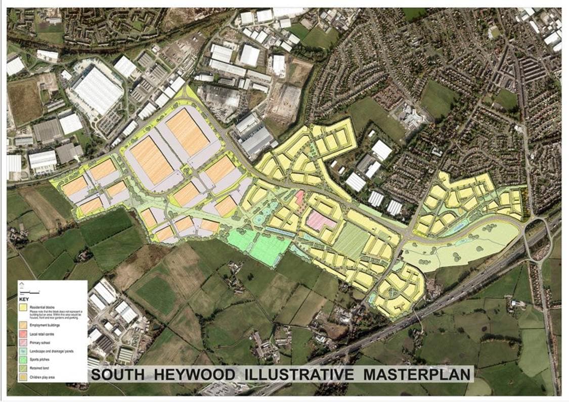 The new link road represents a recognised infrastructure priority for both Rochdale Council and Transport for Greater Manchester and would provide a new strategic eastbound connection to the national motorway network from the major employment areas at South Heywood. The new link road would be part-funded by grants from TfGM and Highways England, with the funding shortfall met by Russell Homes through the revenue generated by the proposed housing areas.
